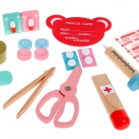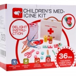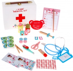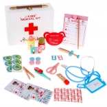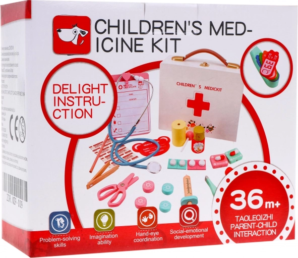 Ten drewniany zestaw lekarski zawiera wszystko, czego mały lekarz potrzebuje do opieki nad swoimi pacjentami. Zawiera 30 różnych części, które kształtem i kolorami przypominają prawdziwe narzędzia lekarskie. Dzięki temu zestawowi dzieci nie tylko pokonują strach przed lekarzami, ale także cieszą się grą pełną wyobraźni i radości. Poszczególne elementy zestawu są przyjazne i kolorowe, co gwarantuje, że dzieci będą chciały je odkrywać.
