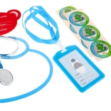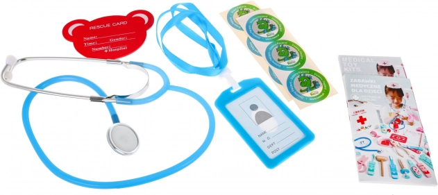 Zestaw zawiera 30 różnych części, w tym działający stetoskop, strzykawkę, nożyczki oraz inne akcesoria, które zapewniają pełne doświadczenie lekarskie.