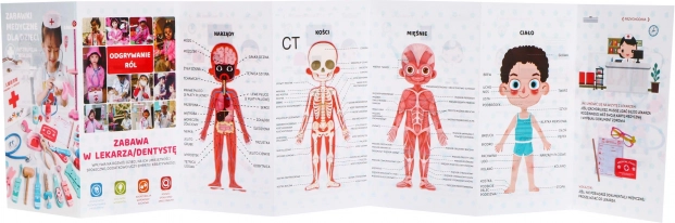 Oprócz narzędzi zabawkowych, zestaw zawiera także książki, które uczą dzieci o ciele ludzkim oraz zachowaniu się podczas wizyty u lekarza, wspierając naukę i interaktywną zabawę.
