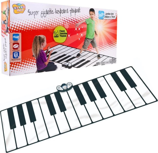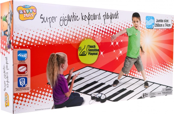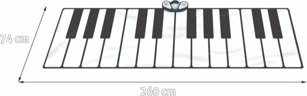 Duża muzyczna mata pozwala dzieciom wejść w świat muzyki i zabawy. Zawiera dwa głośniki, regulację głośności oraz pięć różnych trybów gry: tryb nagrywania, tryb odtwarzania, tryb demo, tryb dźwiękowy i odtwarzanie. Matę można podłączyć do zewnętrznego urządzenia muzycznego i odtwarzać ulubione utwory. Po podłączeniu zewnętrznego urządzenia funkcja demo nie jest dostępna.