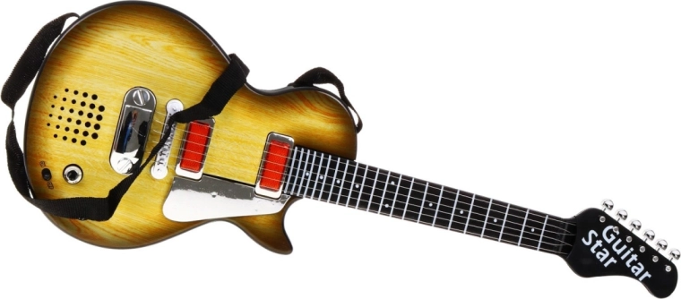 - Realistyczne wrażenia z gry: 6 metalowych strun i korpus z motywem drewna.