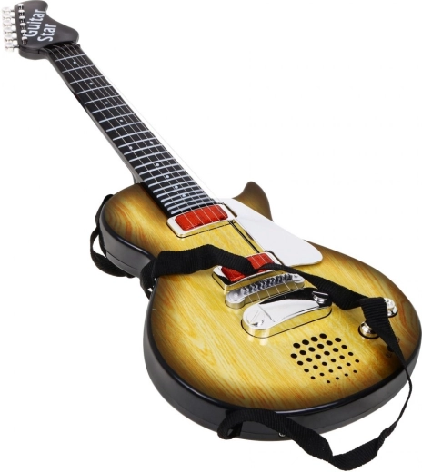 Odkryj zabawną dziecięcą gitarę elektryczną o realistycznym wyglądzie drewna, która wspiera rozwój muzyczny już od 3 roku życia. Oferuje 2 tryby gry, 6 metalowych strun, efekty świetlne i dźwiękowe oraz praktyczny pasek do wygodnego grania na stojąco. W zestawie znajduje się zestaw słuchawkowy z mikrofonem dla jeszcze większej interaktywności.