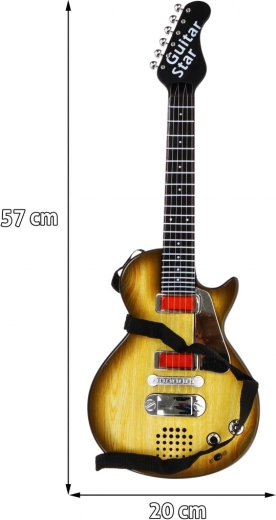 Ta stylowa dziecięca gitara w designie imitującym drewno to idealny wybór dla małych muzyków. Dzięki kompaktowym wymiarom świetnie pasuje także dzieciom od 3 lat i zachęca do odkrywania rytmu oraz kreatywności muzycznej. Gitara jest wyposażona w sześć metalowych strun, które wydają dźwięk przy dotyku, oraz oferuje dwa tryby – odtwarzanie rockowego podkładu i grę na strunach.