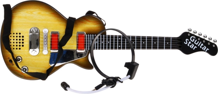 Dla większych wrażeń nie brakuje efektów świetlnych i dźwięków, a także regulowanego paska dla wygodnego noszenia. W zestawie znajdziesz również zestaw słuchawkowy z mikrofonem, który można podłączyć bezpośrednio do gitary – idealny do jednoczesnego śpiewu i gry. Zabawka spełnia certyfikat CE i jest zasilana trzema bateriami AA.