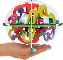 Odkryj wciągającą grę logiczną dla dzieci i dorosłych: przezroczysta kula skrywa kolorowy labirynt 3D z 299 poziomami, w którym prowadzisz kulkę przez tunele, rampy i przeszkody. Rozwija cierpliwość, myślenie logiczne i małą motorykę. Wytrzymałe wykonanie, średnica ok. 18 cm, odpowiednia od 6 lat.