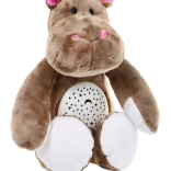 Interaktywny hipcio z projektorem w brzuszku wyświetla na suficie i ścianach rozgwieżdżone niebo w kolorach czerwonym, niebieskim, zielonym i fioletowym. Dzięki przyjemnym melodiom, stonowanym światłom i miękkiej powierzchni dziecko czuje się bezpiecznie, łatwiej się uspokaja i szybciej zasypia. Idealny towarzysz do pokoju dziecięcego na wieczorne rytuały.