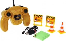 | | Koparka to marzenie każdego małego budowniczego. Solidne wykonanie, żywe kolory, wysokiej jakości plastik. Pojazd jeździ do tyłu, do przodu, skręca w prawo i w lewo. Podczas jazdy słychać dźwięk maszyny. Podczas jazdy do tyłu słychać sygnał cofania. Obrotowe ramię koparki (360 stopni) kopie, porusza się w górę i w dół, sterowane pilotem. Dźwięk klaksonu, wesoła muzyka. Koparka działa na częstotliwości 2,4 GHz. Zabawka odpowiednia dla dzieci od 3 lat, posiada certyfikat CE. Przyjazne środowisku opakowanie typu walizka z rączką do przenoszenia. | Zawartość zestawu | - Koparka (zasilana akumulatorem 4,8 V – w zestawie), - pilot zdalnego sterowania (zasilany 2 x AA – brak w zestawie), - kabel USB, - 2x tabliczka ostrzegawcza, - 2x pachołek. | Wymiary | |