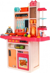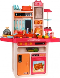 Duża, multifunkcyjna kuchnia dla dzieci zapewnia realistyczną zabawę w gotowanie dzięki płynącej wodzie z kranu, efektom świetlnym i dźwiękowym oraz interaktywnemu palnikowi z parą. Zawiera 65 akcesoriów, w tym lodówkę, piekarnik, zlew, tablicę kredową i zabawny „jajowar” do jajek. Idealna dla dzieci od 3 lat.