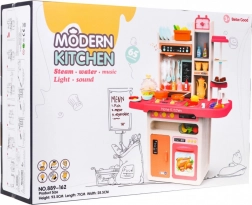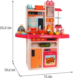 Ta stylowa kuchnia dla dzieci wspiera kreatywność i rozwój motoryki małej. Dzięki realistycznym funkcjom, takim jak bieżąca woda, palnik parowy, światła i dźwięki, dzieci doświadczą autentycznej zabawy w gotowanie. Do dyspozycji jest piekarnik, lodówka, okap z lampką oraz liczne półki do przechowywania.