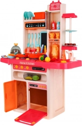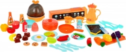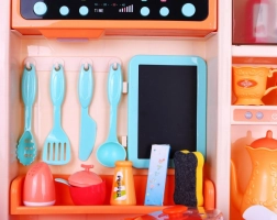 W zestawie znajduje się 65 elementów akcesoriów: naczynia, produkty na rzep, narzędzia do gotowania, tablica z kredą oraz specjalny jajowar ze światłem i dźwiękiem. Kuchnia jest stabilna, kolorowa i idealnie dopasowana rozmiarem do dzieci od 3 lat.