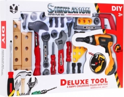Ten bogaty zestaw narzędzi zapewnia dzieciom bezpieczny i angażujący sposób na naśladowanie prawdziwych prac majsterkowych. Główną gwiazdą jest wkrętarko-wiertarka zasilana 2× AA (brak w zestawie), która podczas dokręcania i odkręcania wydaje realistyczne dźwięki. W połączeniu z kluczami, młotkiem, śrubokrętami, piłką, śrubkami i elementami łączącymi dzieci mogą tworzyć własne projekty i poznawać podstawy pracy z narzędziami.