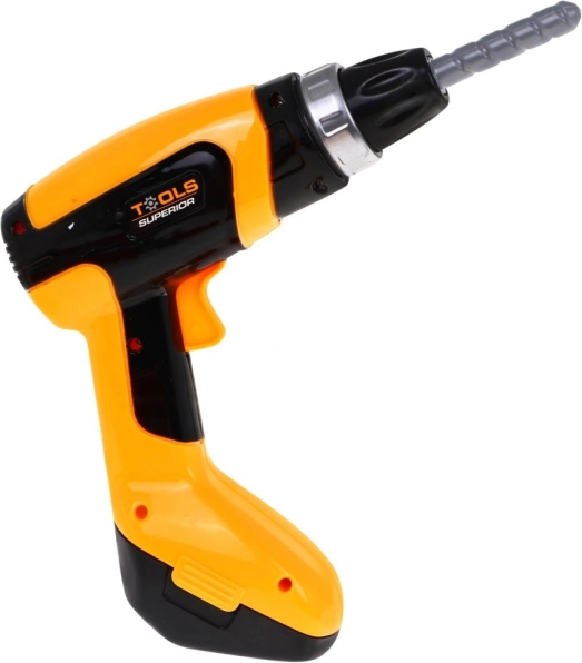 Wkrętarko-wiertarka zasilana 2× AA (brak w zestawie) wydaje podczas dokręcania i odkręcania charakterystyczne dźwięki, co potęguje realistyczne wrażenia z zabawy.