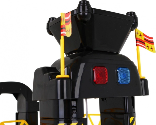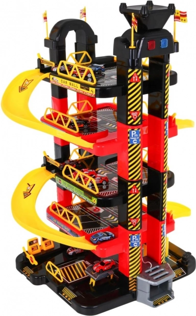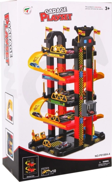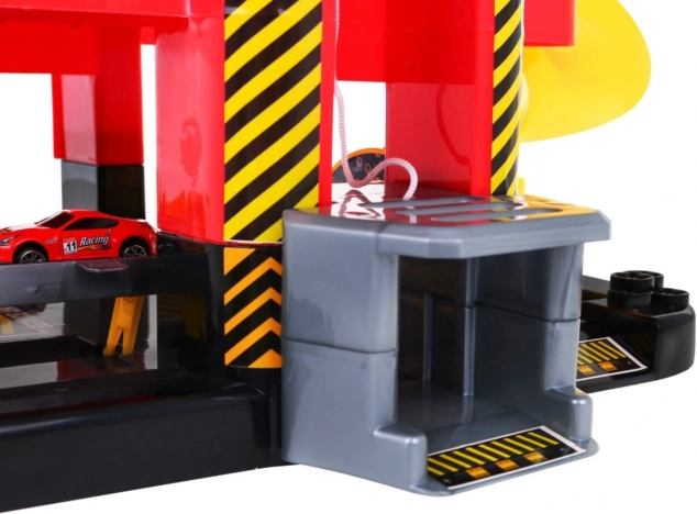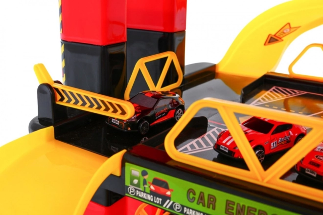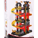 Dziecięcy parking oferuje ekscytującą przestrzeń do zabawy z pięcioma poziomami, do których można się dostać dzięki windzie i zjazdom. Najniższe piętro obejmuje myjnię samochodową, serwis mechaniczny oraz stację paliw. Kolejne poziomy służą jako miejsca parkingowe dla aut, natomiast na samym szczycie znajduje się lądowisko dla helikoptera z ruchomą windą z efektami świetlnymi zasilanymi trzema bateriami AA (nie wchodzą w skład zestawu).