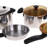 | - płyta indukcyjna, - szybkowar, - garnek z pokrywką, - patelnia, - wok z pokrywką, - chochla, - cedzak, - 2 x łopatka, - podkładka pod garnek, - kurczak, - stek, - kapusta, - podudzie z kurczaka, - kolba kukurydzy, - grzyby, - czosnek, - zielony pieprz, - marchewka, - ryba, - jajko sadzone, - solniczka, - pieprzniczka, - masło orzechowe, - sardynki, - sos pomidorowy, - miód. | ||