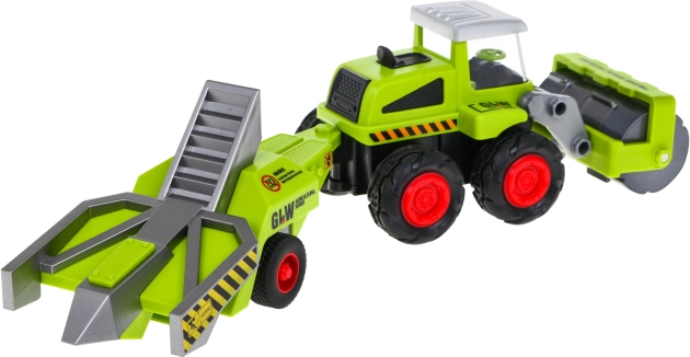 Podnoszone i obracane na boki wały umożliwiają realistyczne przygotowanie „pola”, a odłączana przyczepa ułatwia przewożenie „plonów”. Gumowe opony dobrze trzymają się podłoża, a napęd tylnej osi zapewnia płynny ruch całego zestawu.