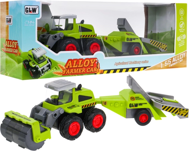 Realistyczny zestaw rolniczy dla małych gospodarzy: traktor w skali 1:55 z wałem glebowym i sadowniczą przyczepą. Oferuje metalową konstrukcję, gumowe opony, napęd tylnej osi oraz podnoszone i obrotowe wały dla jeszcze ciekawszej zabawy. Idealny dla dzieci od 3 lat.