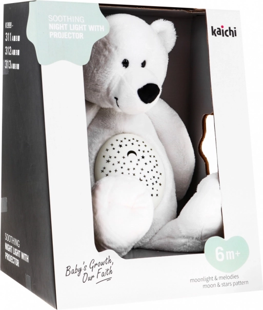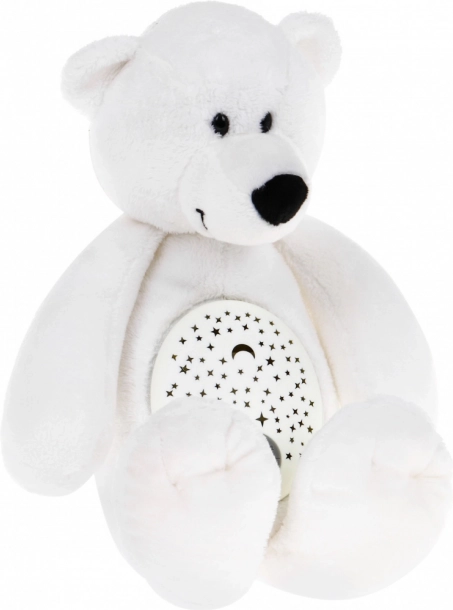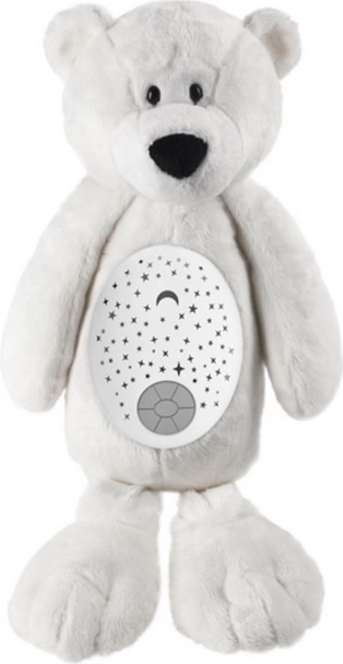Ten interaktywny miś tworzy kojącą atmosferę sprzyjającą łatwiejszemu zasypianiu. Projektor w brzuszku rzutuje na sufit i ściany delikatne rozgwieżdżone niebo w kolorach czerwonym, niebieskim, zielonym i fioletowym, które przyciągają wzrok dziecka i jednocześnie je wyciszają. Miękki, przyjemny w dotyku plusz jest bezpieczny dla niemowląt i zachęca do przytulania.