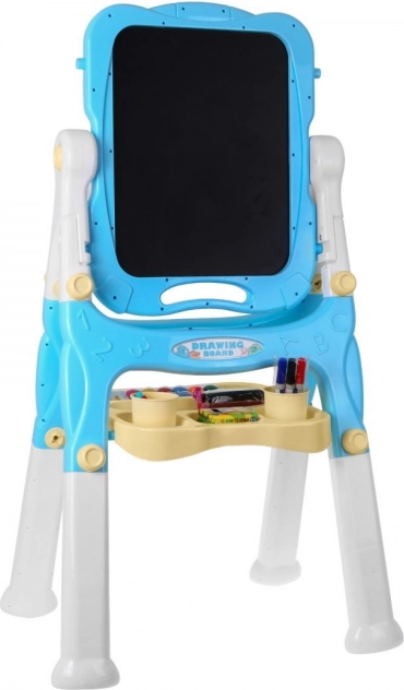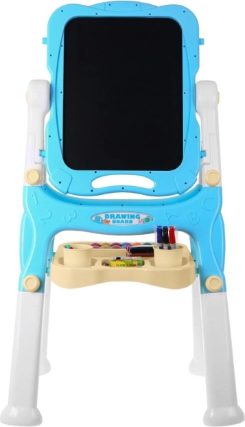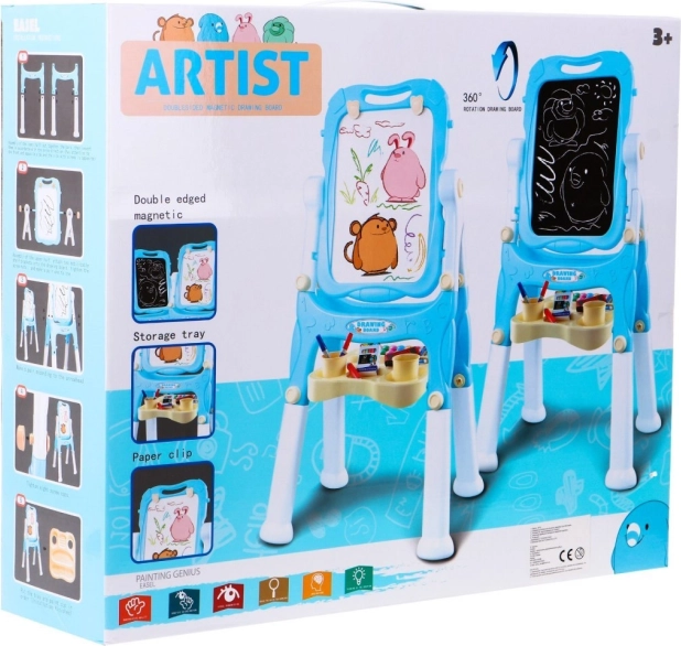 Dwustronna tablica do rysowania została zaprojektowana tak, aby wspierać dzieciństwo pełne kreatywności. Na białej stronie dzieci mogą pisać dołączonymi markerami i łatwo wszystko zmazać gąbką. Funkcja magnetyczna pozwala przyczepiać kolorowe magnesy, a klipsy umożliwiają przymocowanie papieru do dalszego malowania.