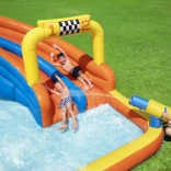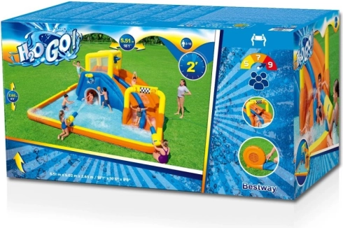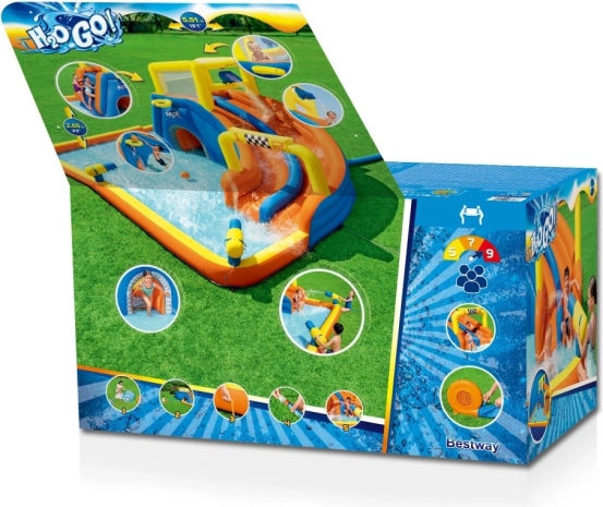 Dzieci mogą korzystać z podwójnej zjeżdżalni ze zbiornikiem wody, który stale utrzymuje powierzchnię mokrą. Ponadto plac zawiera basen, ściankę wspinaczkową z uchwytami, dwa działa wodne do małych bitew oraz tunel pod zjeżdżalnią. W zestawie znajduje się także wieża z siatką oraz kosz do koszykówki.