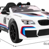 W zestawie znajduje się ładowarka z kontrolką, zestaw montażowy, instrukcja, ochronny pokrowiec na pojazd, kabel MiniJack oraz uchwyt transportowy z dodatkowymi gumowymi kółkami do łatwego przemieszczania. Maksymalne obciążenie to 30 kg, prześwit 9 cm, wymiary pojazdu 131 × 64 × 46 cm. Idealny wybór dla dzieci, które chcą się ścigać jak w BMW M6 GT3.