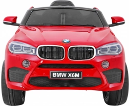 Stylowy elektryczny samochodzik dla dzieci BMW X6M w lakierowanym, czerwonym kolorze oferuje dwa mocne silniki 2 × 45 W, system akumulatorów 12 V (2 × 6 V/7 Ah), pilot 2,4 GHz z przyciskiem bezpieczeństwa STOP oraz wygodne siedzisko z ekoskóry z wielopunktowymi pasami. Koła z pianki EVA, światła LED, panel audio z MP3/USB/AUX/TF i płynny start gwarantują bezpieczną i świetną zabawę podczas jazdy.