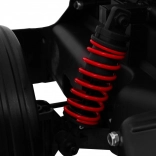Niezależne zawieszenie przednich kół oraz tylny amortyzator pochłaniają nierówności i zapewniają stabilność oraz wygodę na różnych nawierzchniach.