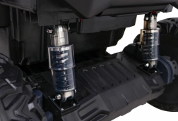 Przeżyj świetną terenową przygodę z elektrycznym pojazdem UTV. Dwa mocne silniki 2×200 W, akumulator 24V oraz regulowane amortyzatory (z przodu i z tyłu) zapewniają płynną i stabilną jazdę nawet po nierównym podłożu. Miękkie koła EVA 34×15 cm doskonale tłumią wibracje i gwarantują maksymalny komfort.