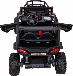 Solidny elektryczny samochód dziecięcy w stylu UTV oferuje moc 2×200 W, akumulator 24V 7Ah oraz miękkie koła EVA dla wygodnej jazdy w terenie. Pilot 2.4 GHz z przyciskiem bezpieczeństwa Stop, płynny start, przednie i tylne światła LED, panel audio MP3/AUX/USB oraz pojemny tylny bagażnik czynią z tego pojazdu terenowego idealny wybór do przygód na świeżym powietrzu.