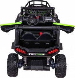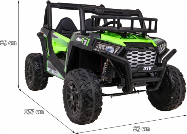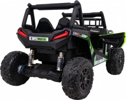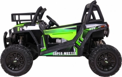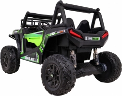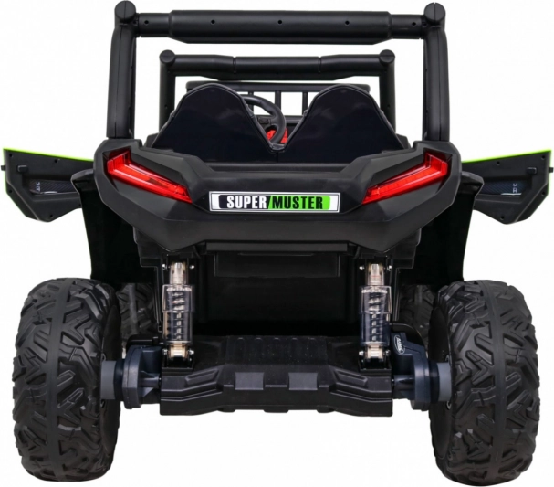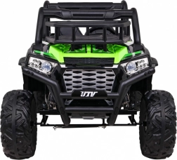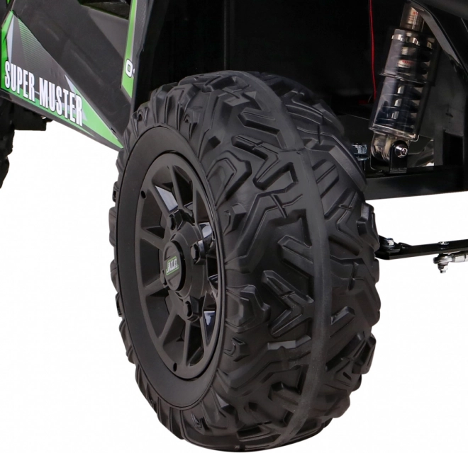 Terenowe UTV dla dzieci w atrakcyjnym zielonym kolorze stworzone jest do przygód. Dwa mocne silniki 2×200 W w połączeniu z akumulatorem 24 V 7 Ah zapewniają wystarczającą moc także na nierównej nawierzchni. Piankowe koła EVA 34×15 cm tłumią drgania, a wraz z zawieszeniem 2× z przodu i 2× z tyłu zapewniają komfortową i stabilną jazdę.