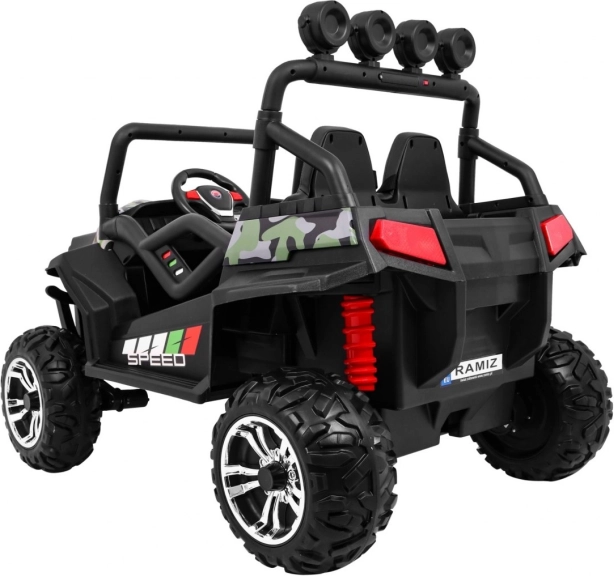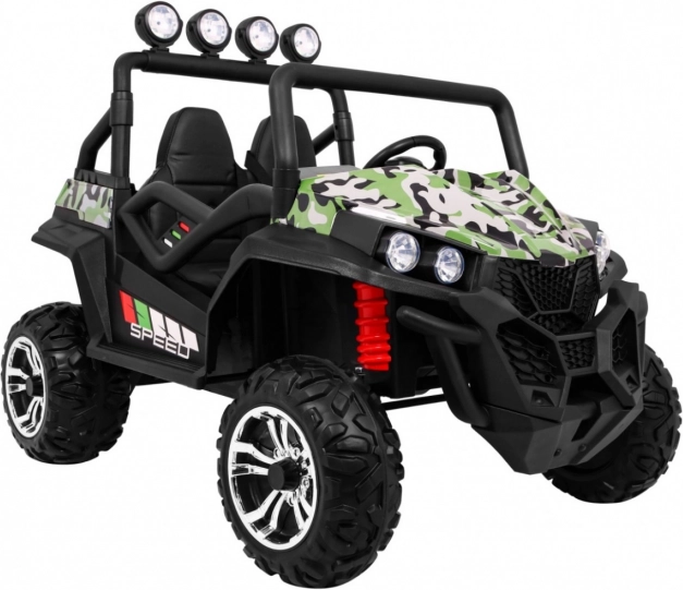 Z kamuflażowym wyglądem i odpornością na użytkowanie zewnętrzne, autko Grand Buggy 4x4 jest idealne dla małych poszukiwaczy przygód.