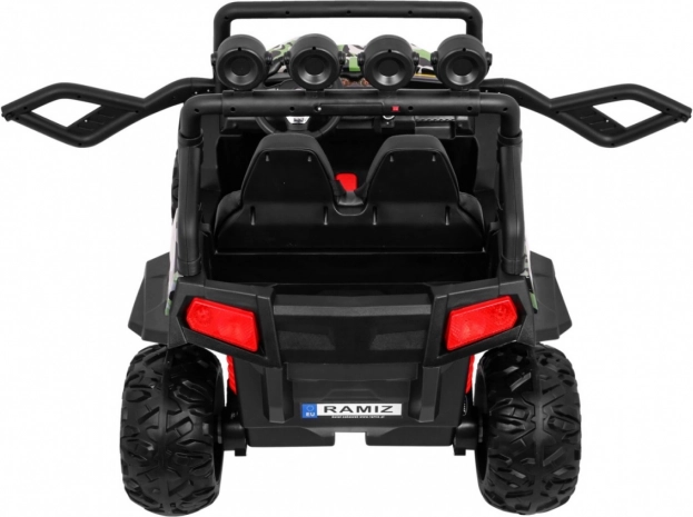 Sterowanie jest łatwe dzięki pilotowi zdalnego sterowania z funkcją Stop i trzema prędkościami. Panel audio z radiem FM, MP3, SD, AUX oraz Bluetooth umożliwia odtwarzanie ulubionej muzyki i zwiększa zabawę podczas jazdy.