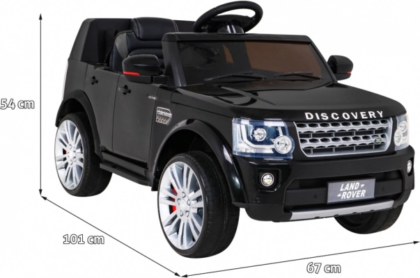 Samochodzik Land Rover Discovery wyróżnia się realistycznymi detalami, takimi jak kierownica, lusterka i firmowe logotypy. Elegancki czarny kolor i nowoczesny wygląd sprawią, że Twoje dziecko pokocha każdą przejażdżkę.