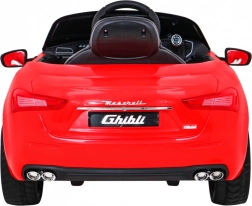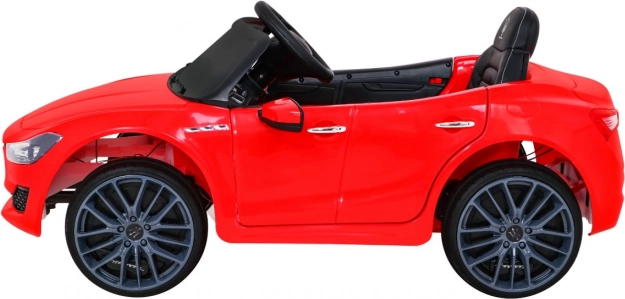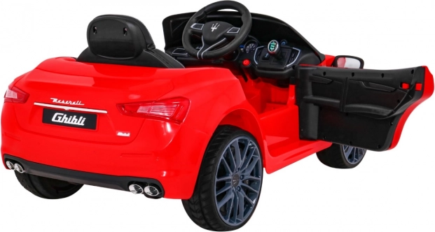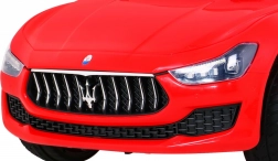 Stylowy dziecięcy samochód elektryczny MASERATI Ghibli oferuje napęd 2×12 V, płynny start, miękkie koła EVA, zdalne sterowanie 2,4 GHz oraz oświetlenie LED. Komfort zapewniają fotel z ekoskóry z pasami, otwierane drzwi z blokadą oraz rozbudowany panel audio z MP3/USB/SD/AUX.