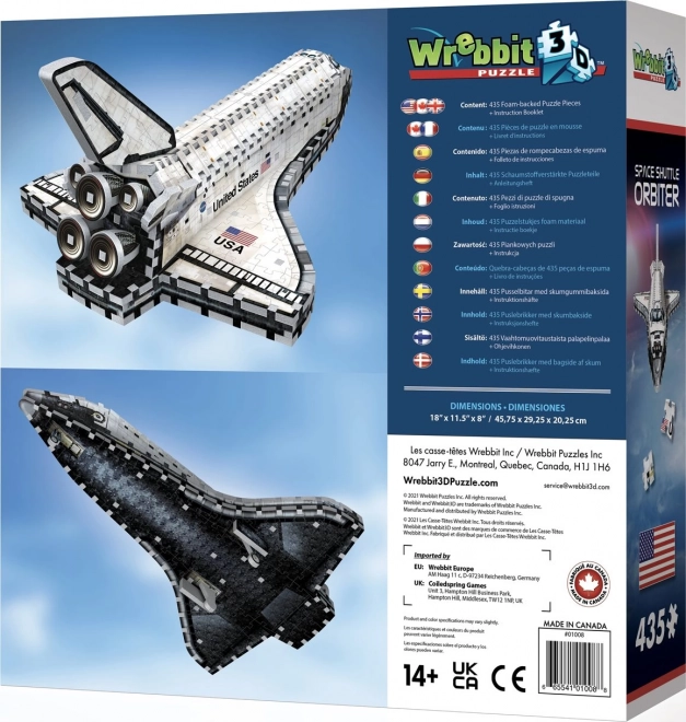 Odkryj radość z budowy trójwymiarowego modelu promu kosmicznego, który wiernie odwzorowuje prawdziwego Orbitera – jedyną część zestawu wahadłowca, która trafia na orbitę i bezpiecznie ląduje z powrotem na Ziemi. Puzzle 3D WREBBIT zapewniają zrównoważone wyzwanie i zabawę dzięki nienumerowanym elementom oraz wyraźnym ilustracjom referencyjnym.