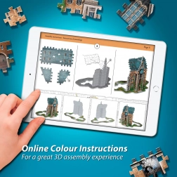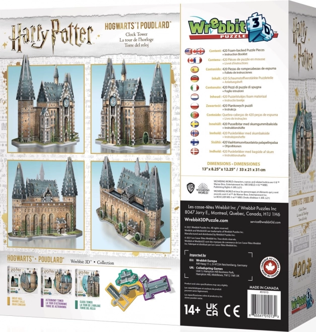 Przeżyj radość tworzenia z oryginalnymi puzzlami 3D WREBBIT Harry Potter – Wieża Zegarowa. Dzięki pomysłowym kształtom elementów i wysokiej jakości materiałom części łączą się pewnie bez klejenia, tworząc realistyczny model Hogwartu o wymiarach ok. 33 × 21 × 31 cm. Składanie odbywa się według zdjęć referencyjnych na pudełku oraz przejrzystej obrazkowej instrukcji.