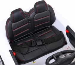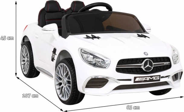 Stylowy elektryczny samochodzik dla dzieci inspirowany ikoną MERCEDES-AMG SL 65 S oferuje 2× 35 W silniki, akumulator 12 V/7 Ah oraz zdalne sterowanie 2.4 GHz z 3 prędkościami i przyciskiem Stop. Koła z pianki EVA oraz zawieszenie z przodu i z tyłu zapewniają płynną i cichą jazdę, a oświetlenie LED, otwierane drzwi z blokadą i ekoskórzane siedzisko z pasem dbają o bezpieczeństwo i realistyczne wrażenia. Nie brakuje panelu MP3/USB/AUX, płynnego startu ani lubianej funkcji kołysania.
