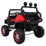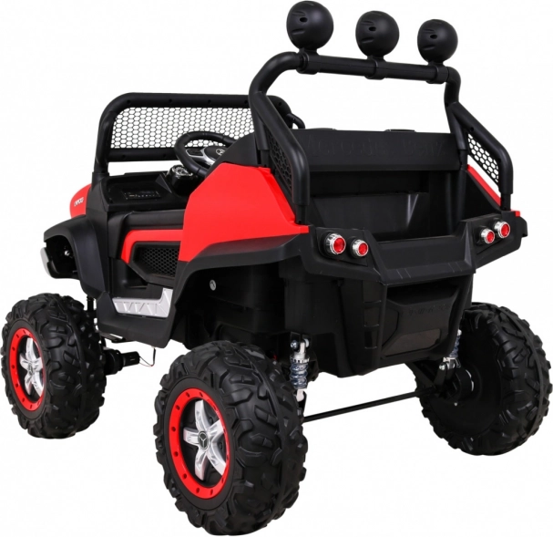 Komfortowe siedzenie z eko‑skóry z pasami bezpieczeństwa utrzymuje dzieci w bezpiecznej pozycji. W zestawie znajdują się instrukcja i zestaw montażowy, ładowarka, praktyczny pokrowiec/przykrycie na pojazd oraz kabel MiniJack. Idealny wybór dla dzieci, które kochają realistyczną jazdę i przygodę.