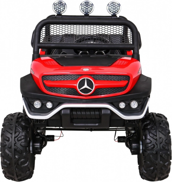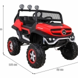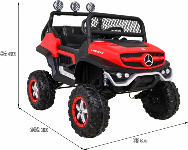 Solidny samochód dla dzieci inspirowany legendarną terenówką Mercedes‑Benz UNIMOG radzi sobie z nierównościami dzięki dużym oponom EVA, wysokiemu prześwitowi oraz regulowanemu zawieszeniu. Opcjonalny napęd 4x4 lub 4x2 pozwala dopasować moc do nawierzchni, a płynny start i wybór przód/tył zapewniają komfortowe sterowanie.