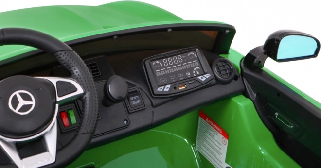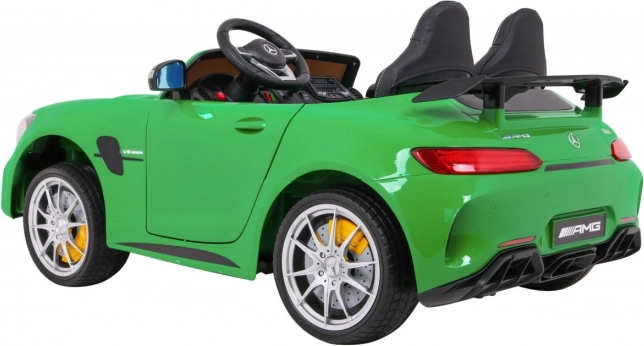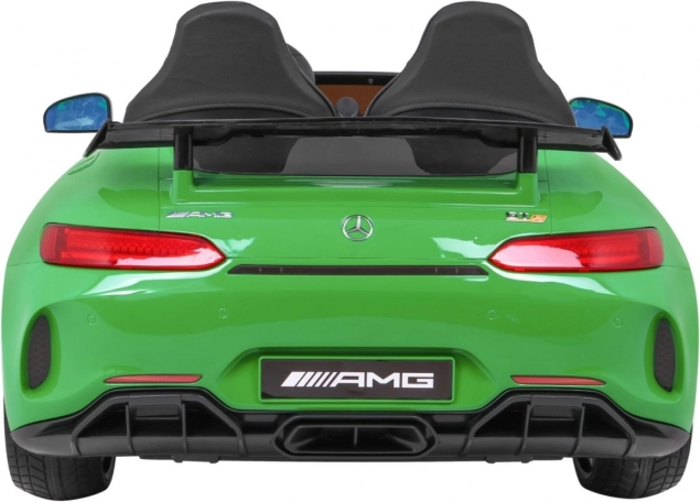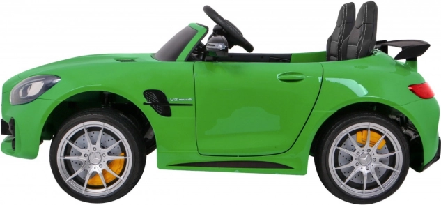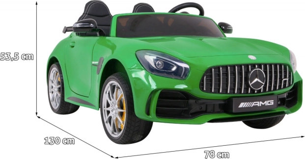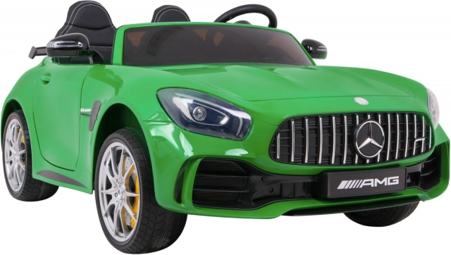 Stylowy dziecięcy elektryczny samochodzik MERCEDES‑BENZ GT R z napędem 4x4, lakierowaną zieloną karoserią i dwoma skórzanymi siedzeniami zapewnia realistyczną jazdę z oświetleniem LED, łagodnym startem oraz bogatym wyposażeniem multimedialnym. Dzięki piankowym kołom EVA, zawieszeniu z przodu i z tyłu oraz pilotowi 2,4 GHz jazda jest wygodna i bezpieczna zarówno dla dzieci, jak i rodziców.