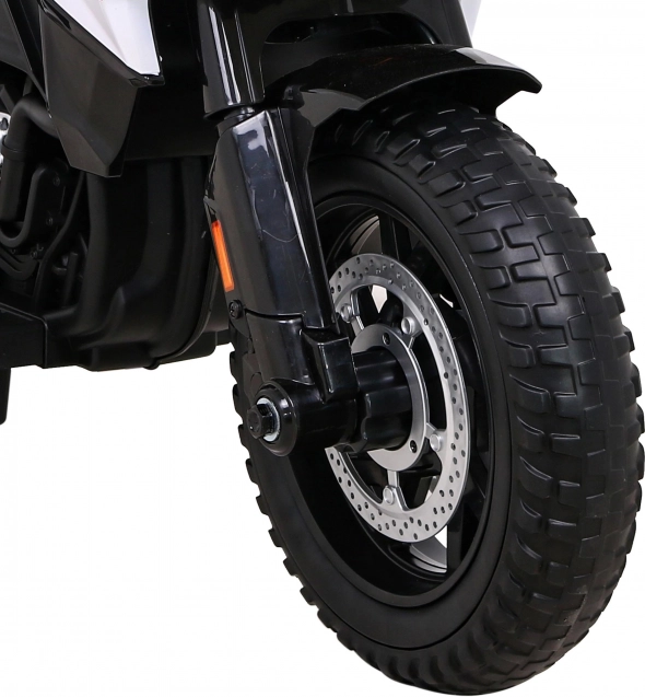 Wydajny zestaw 2×35 W z akumulatorem 12V/7Ah sprosta codziennym przejażdżkom. Dzieci ucieszą efekty świetlne, panel audio z wgranymi melodiami oraz możliwość podłączenia USB i AUX. Przednie światła LED oraz realistyczne wykonanie kierownicy, lusterek i wydechu podkreślają wygląd prawdziwej maszyny przygodowej.