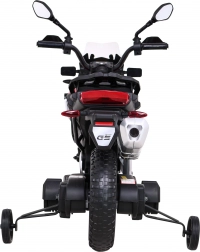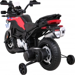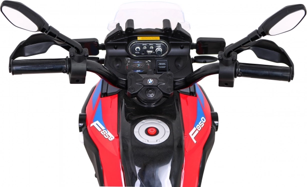 Stylowy dziecięcy motocykl licencjonowany BMW F850 GS oferuje realistyczne wrażenia z jazdy dzięki dwóm silnikom 2×35 W i akumulatorowi 12 V/7 Ah. Posiada łagodny start dla płynnego ruszania, piankowe koła EVA dla cichej i komfortowej jazdy, przednie światła LED oraz panel audio z USB/AUX. Stabilność zapewniają zdejmowane kółka pomocnicze.<
