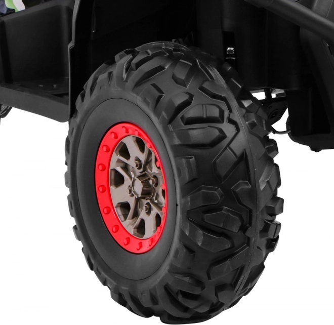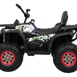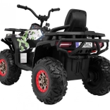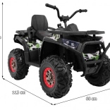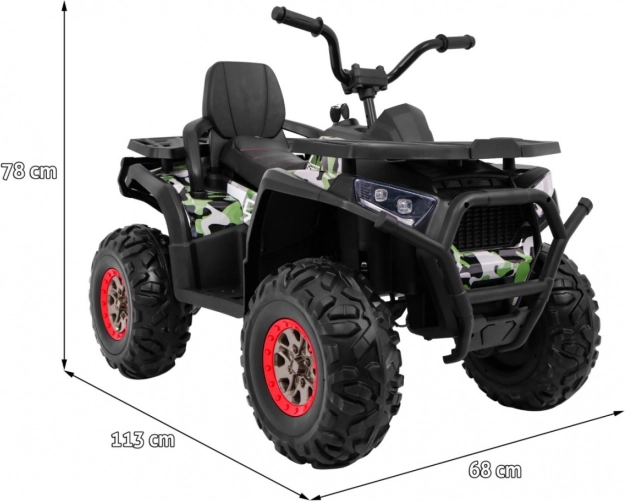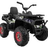 Quad ma duże koła EVA, które zapewniają doskonałą przyczepność i stabilność podczas jazdy. Światła LED zwiększają atrakcyjność i funkcjonalność zarówno z przodu, jak i z tyłu pojazdu. Dodatkowe elementy obejmują wysokiej jakości tapicerowane siedzisko z czarnej ekoskóry oraz zaawansowany panel audio z wejściami MP3, SD, AUX i USB.