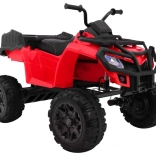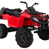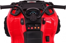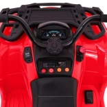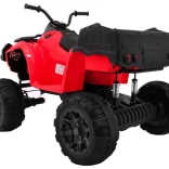 Wytrzymały dziecięcy elektryczny quad w kolorze czerwonym oferuje napęd 4x4 (4×45 W), akumulator 12 V/10 Ah, miękkie koła EVA oraz podwójne zawieszenie dla płynnej jazdy. O bezpieczeństwo i komfort dbają łagodny start, oświetlenie LED, pilot 2,4 GHz z funkcją STOP oraz rozbudowany panel audio mp3/usb/fm/tf/aux. Do tego tylna paka i składana rączka transportowa.
