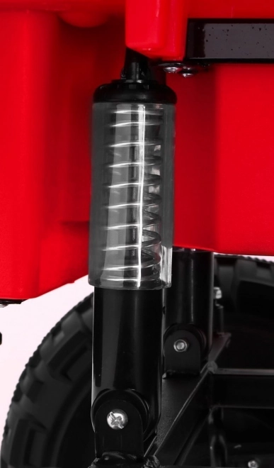 Zawieszenie 2× z przodu i 2× z tyłu z wzmocnionymi sprężynami tłumi nierówności. Łagodny start eliminuje szarpnięcia przy ruszaniu i zwiększa bezpieczeństwo małego kierowcy.