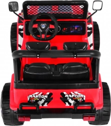 RAPTOR DRIFTER to solidne dziecięce auto elektryczne inspirowane designem off‑road. Dzięki dwóm silnikom 2×45 W i bateriom 2×6 V/10 Ah radzi sobie na nierównościach, a miękkie koła EVA tłumią drgania i zapewniają cichą, wygodną jazdę. Miękki start chroni dziecko przed szarpnięciem przy ruszaniu, a pasy bezpieczeństwa utrzymują małego kierowcę w fotelu.