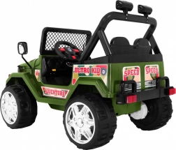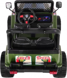 Zielony Raptor Drifter to solidne dziecięce auto elektryczne dla dwojga dzieci z realistycznym sterowaniem i pilotem dla rodziców. Oferuje 2 silniki 45 W, dwie baterie 6 V/10 Ah, miękkie koła EVA oraz bogate nagłośnienie (MP3/USB/SD/AUX). Bezpieczeństwo zapewniają pasy, płynny start oraz przycisk Stop na pilocie 2,4 GHz.