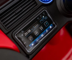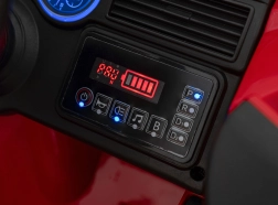 - Komfort i zabawa: koła EVA, przednie amortyzatory, panel audio z melodiami i syreną, wskaźnik naładowania.