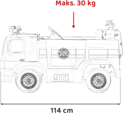 Spełnij marzenie małych strażaków dzięki realistycznemu autku na akumulator 12V. Oferuje 2 mocne silniki, zdalne sterowanie 2.4 GHz z awaryjnym przyciskiem Stop, świetlne efekty LED oraz otwierane drzwi. Dla jeszcze większej zabawy są syrena, odtwarzanie melodii i bogate wyposażenie strażackie, w tym wodny spryskiwacz i kask.