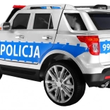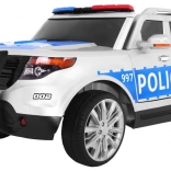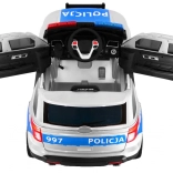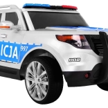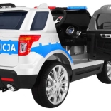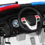Auto wyposażono w realistyczne światła LED z przodu i z tyłu, migające policyjne koguty oraz bogaty panel audio: radio FM, MP3, SD, AUX, USB i dźwięki w kierownicy. Wielką atrakcją jest megafon połączony z głośnikami oraz autentyczne syreny. O komfort dbają bezobsługowe koła EVA, 4 amortyzatory (2 z przodu, 2 z tyłu) oraz wentylowane siedzisko z ekoskóry. Otwierane drzwi i uchwyt transportowy z dodatkowymi kółkami ułatwiają przenoszenie.
