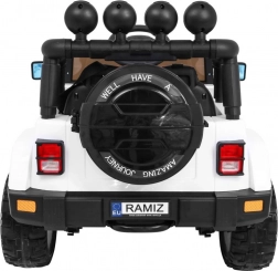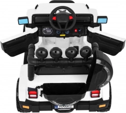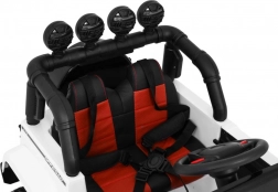 Stylowy dziecięcy samochód terenowy z napędem 4x4 oferuje realistyczną jazdę dzięki 4 silnikom, miękkim kołom EVA oraz przednim i tylnym światłom LED. Rodzice docenią zdalne sterowanie 2,4 GHz z przyciskiem bezpieczeństwa STOP, a dzieci panel audio z MP3/USB/SD/AUX, otwierane drzwi i ukryty schowek w kole zapasowym.